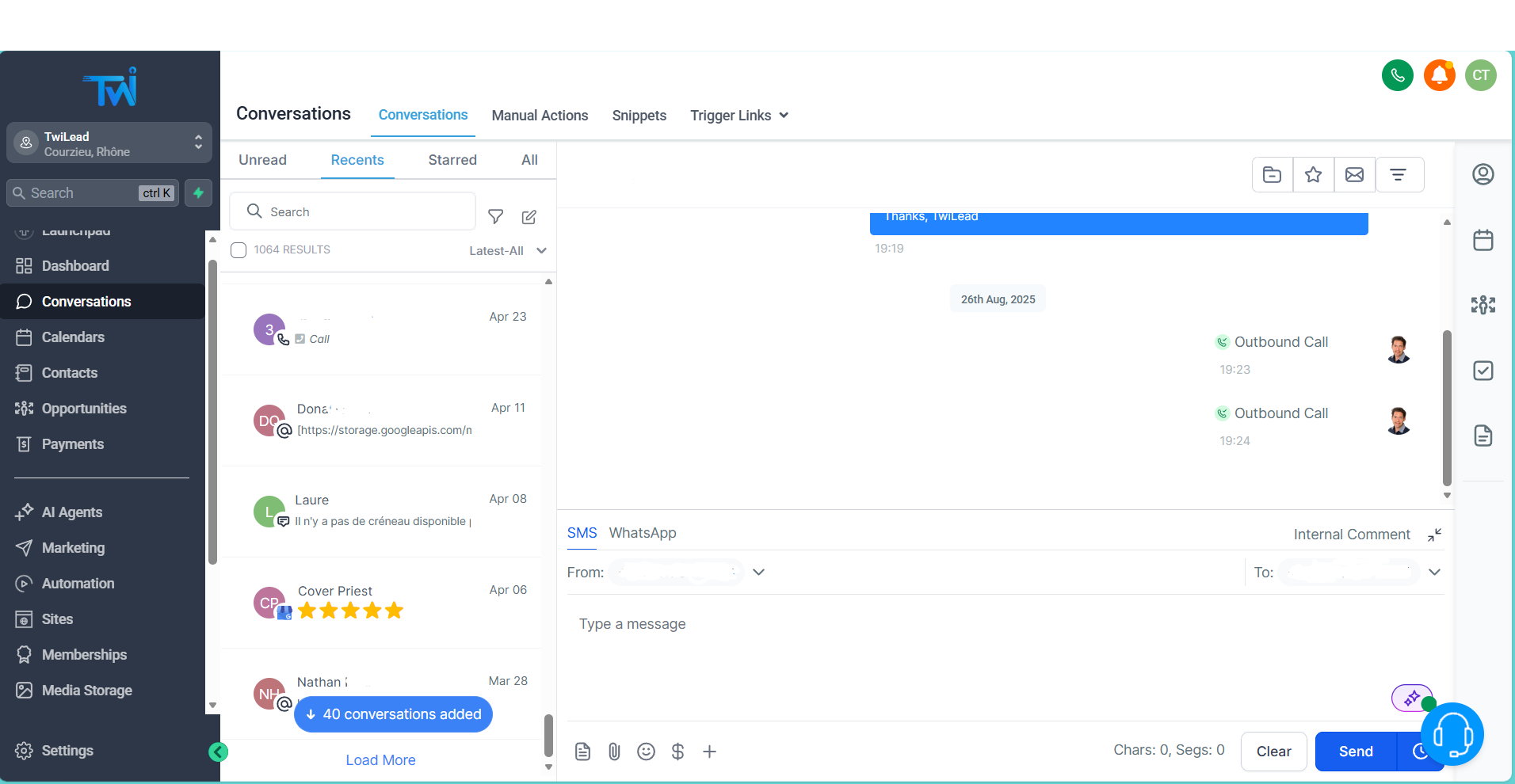 Si un client appelle alors que l’équipe n’est pas disponible, TwiLead renvoie un SMS automatisé, engageant la conversation avec lui.