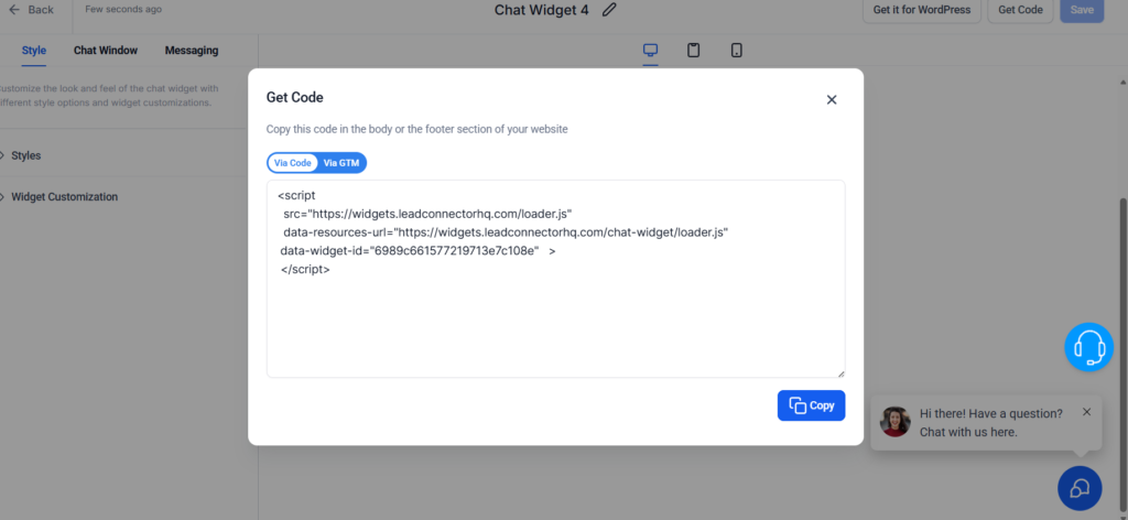 - Go to Sites → Chat Widget